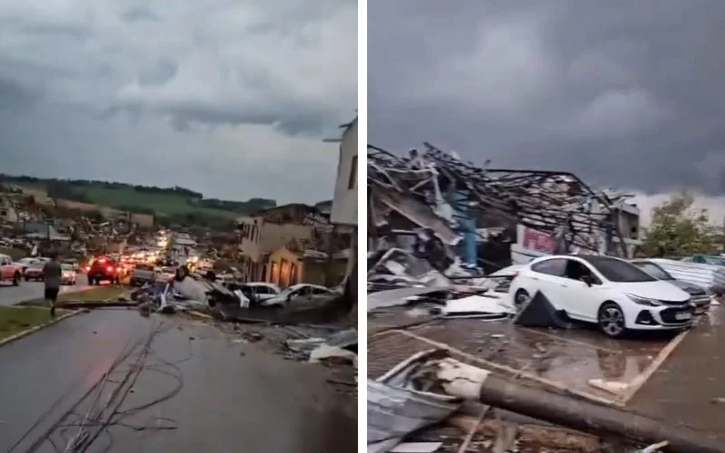 Imagens compartilhadas por moradores mostram casas completamente destruídas, veículos tombados e grandes áreas de devastação. Especialistas indicam que o evento foi provocado pelo encontro de massas de ar quente e úmido vindo do Norte com o ar frio trazido pelo ciclone extratropical no Sul.